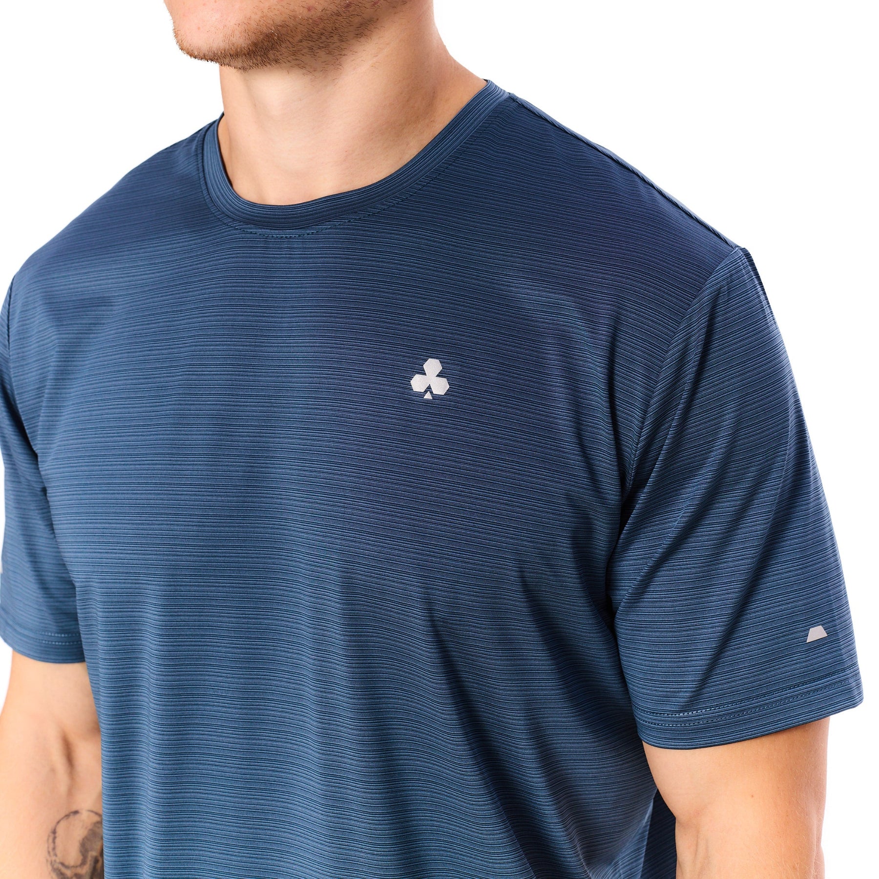 Our signature Precision Fit is designed to balance performance with comfort. We refined the shirt to be slightly slimmer through the arms and chest, creating a sharp, athletic shape, while maintaining a regular fit through the body for unrestricted movement. The result is a T that feels tailored for training yet versatile enough for everyday wear. For a more relaxed, looser fit, we recommend sizing up.